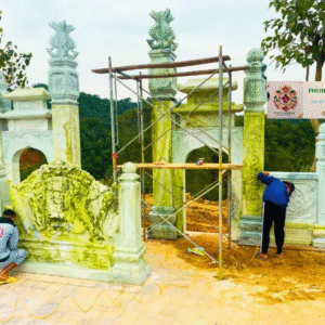 Chất liệu chủ yếu là đá xanh tự nhiên và các loại đá nguyên khối khác, giúp trường tồn với thời gian.