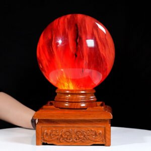 Quả cầu đá obsidian đỏ 10,23kg – 20,8cm + đế đèn xoay