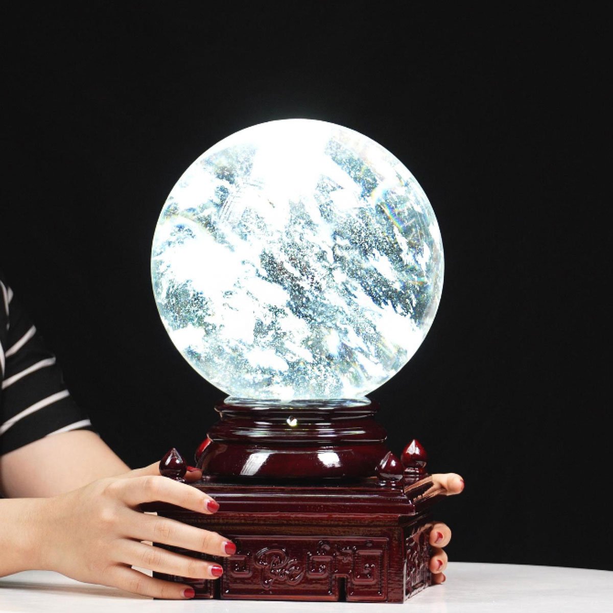 Quả cầu obsidian trắng 9,75kg – 20,3cm + đế đèn xoay