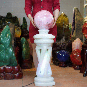 Quả cầu thạch anh hồng 2A 23,6kg – 26cm + đế đá xoay
