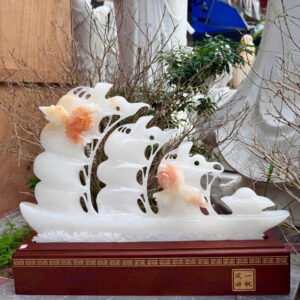 Thuyền buồn uyên ương đá ngọc trắng onyx