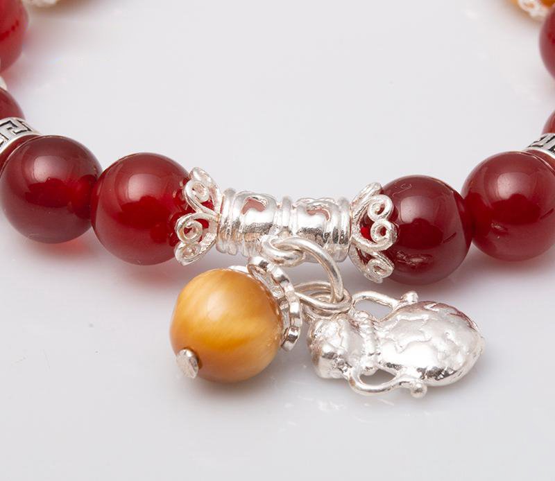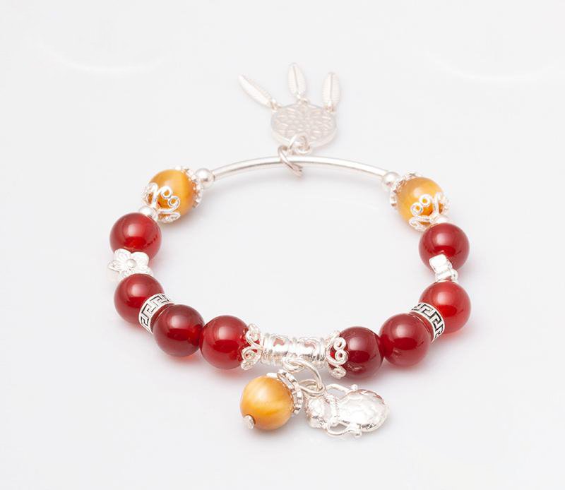 Vòng Tay Đá Mã Não Đỏ 8 Mix Charm Lưới Giấc Mơ (Dreamcatcher) Bạc 999 BLGM04