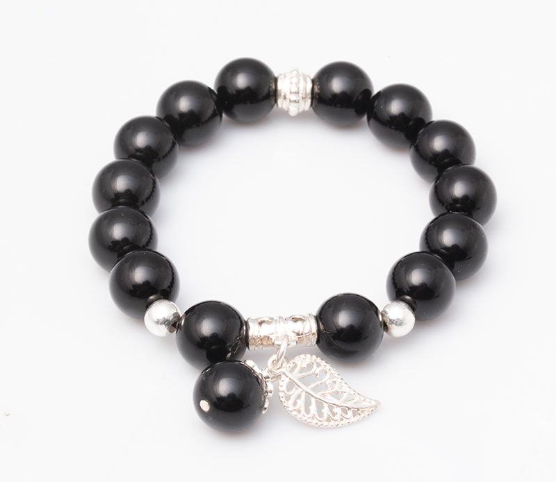 Vòng Tay Đá Núi Lửa Obsidian 10 Mix Charm Lá Treo Bạc 999 BLT01
