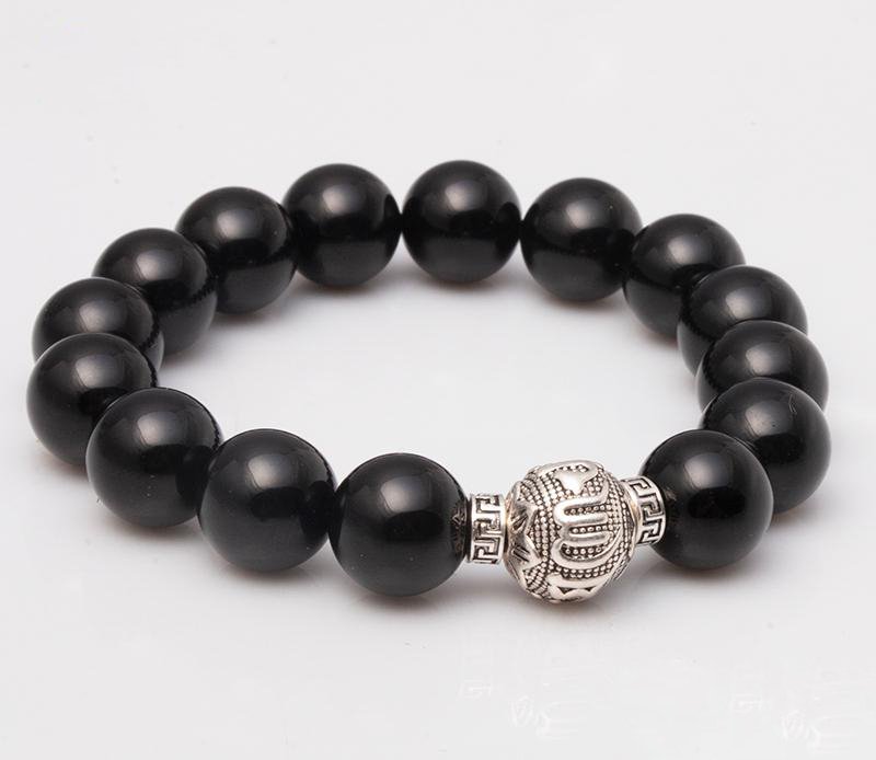 Vòng Tay Đá Núi Lửa Obsidian 12 Mix Charm Omshanti Bạc 925 12 BOST01