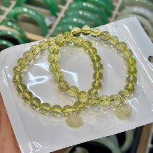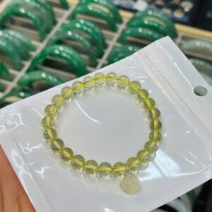 Vòng thạch anh vàng 7,3ly mix charm hoa sen, móc bạc